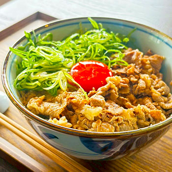 旨みあふれる和牛を甘辛く煮込み、ふっくらご飯にたっぷりとのせました。濃厚な卵黄を添えて、味の変化も楽しめる贅沢な一杯。コク深い赤出汁とともにどうぞ。